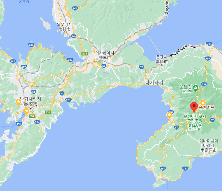 나가사키 공항에서 1시간 반 정도, 지난번 소개드린 인근의 오바마에서는 20분정도 소요됩니다.