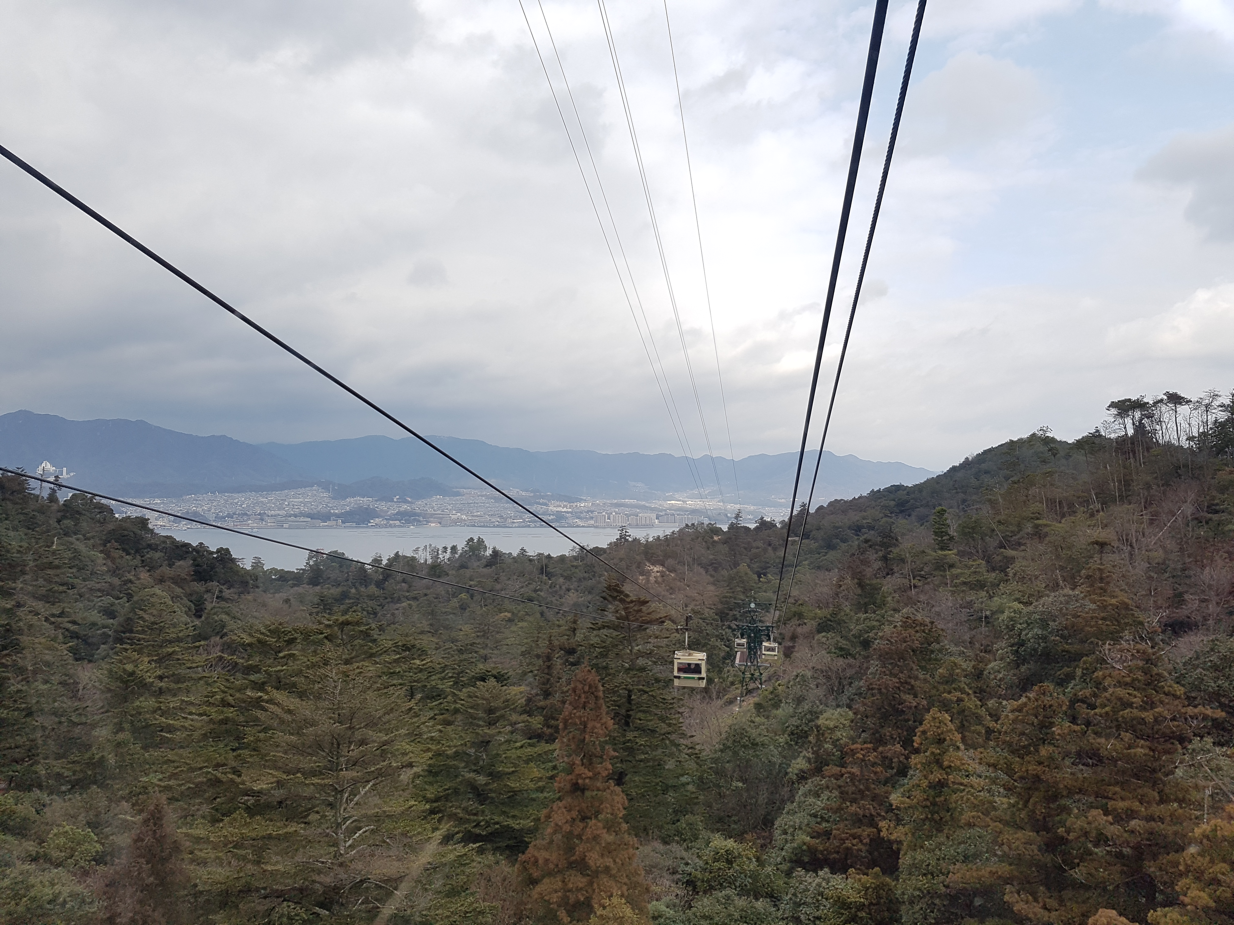신사 구경을 마친후에는 인근에 있는 로프웨이를 타고 세토내해가 한눈에 보이는 전망대로 가 봅니다. 로프웨이를 타고 올라가는 산이 위에 잠깐 언급한 미센 산인데요. 울창한 숲과 함께 드문드문 놓인듯한 섬들이 제법 아름답게 보이는 곳입니다.