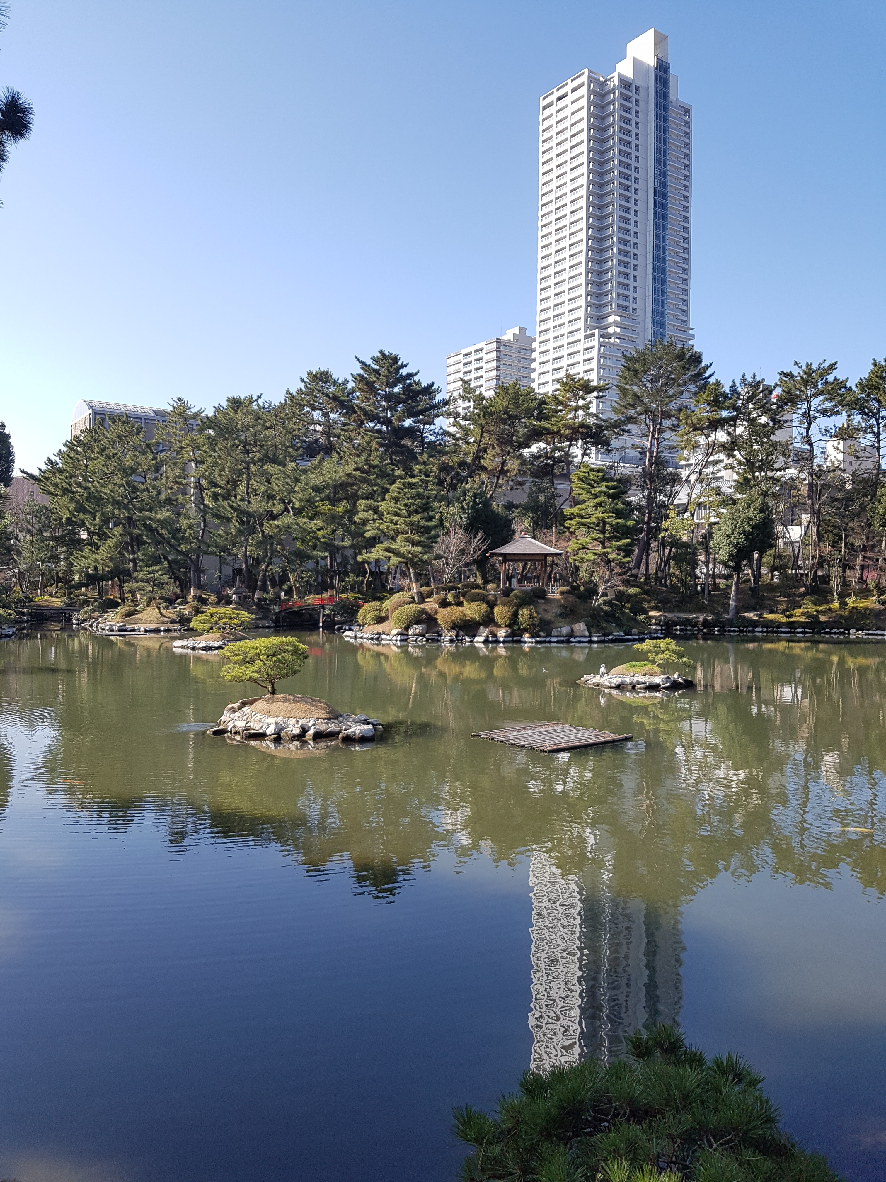 예전 운젠 포스팅에서 제가 숲에 포위된 느낌이라고 쓴 기억이 있는데요. 이곳 슛케이엔에 있다 보면 그와 반대의 느낌이 들더군요. 사진에서 보시다시피 주변이 온통 빌딩과 맨션 (아파트)으로 가득합니다. 솔직히 부러웠습니다. 이런 정원 뷰의 맨션에 사는 사람들이요. ㅎㅎ