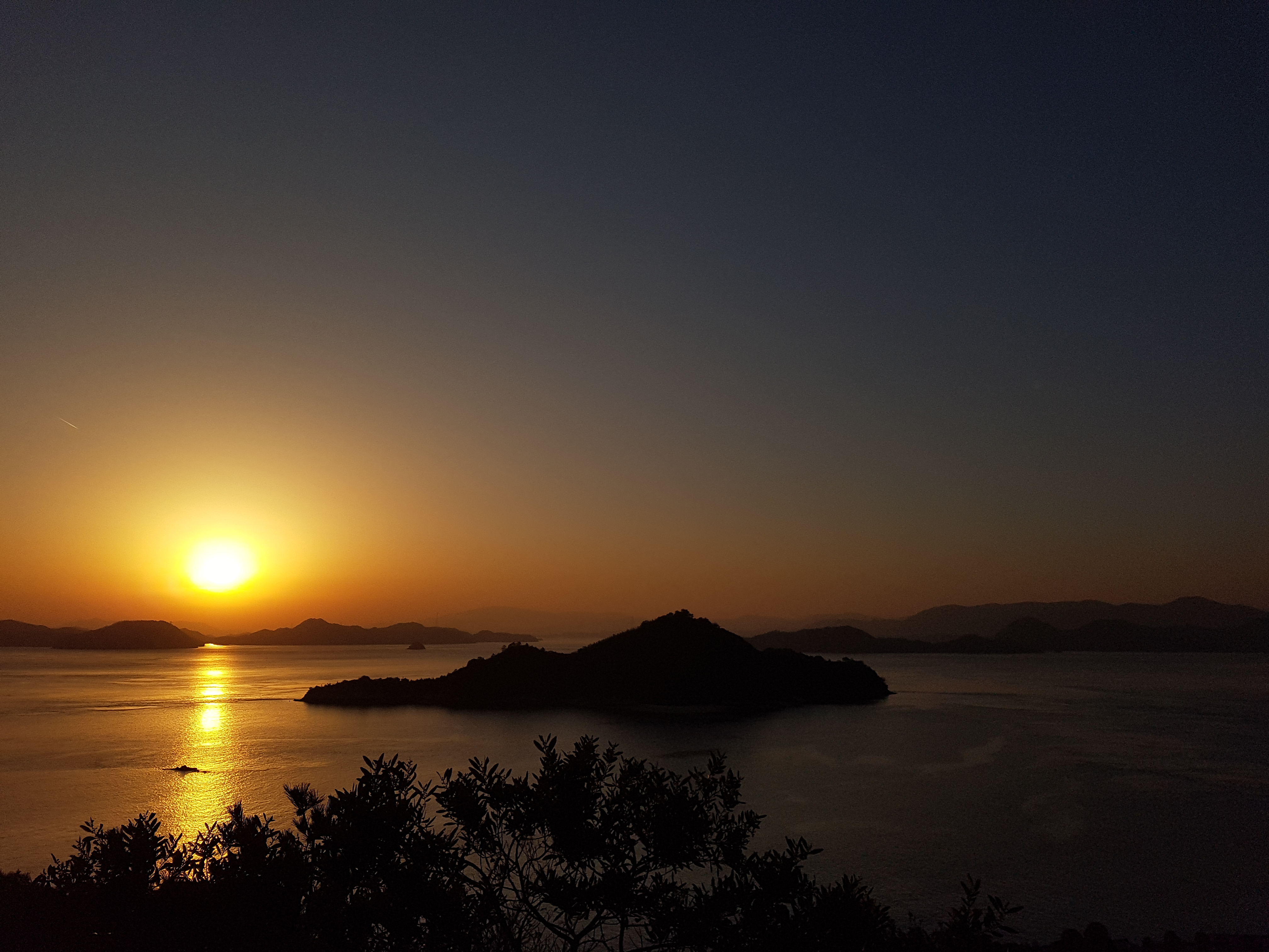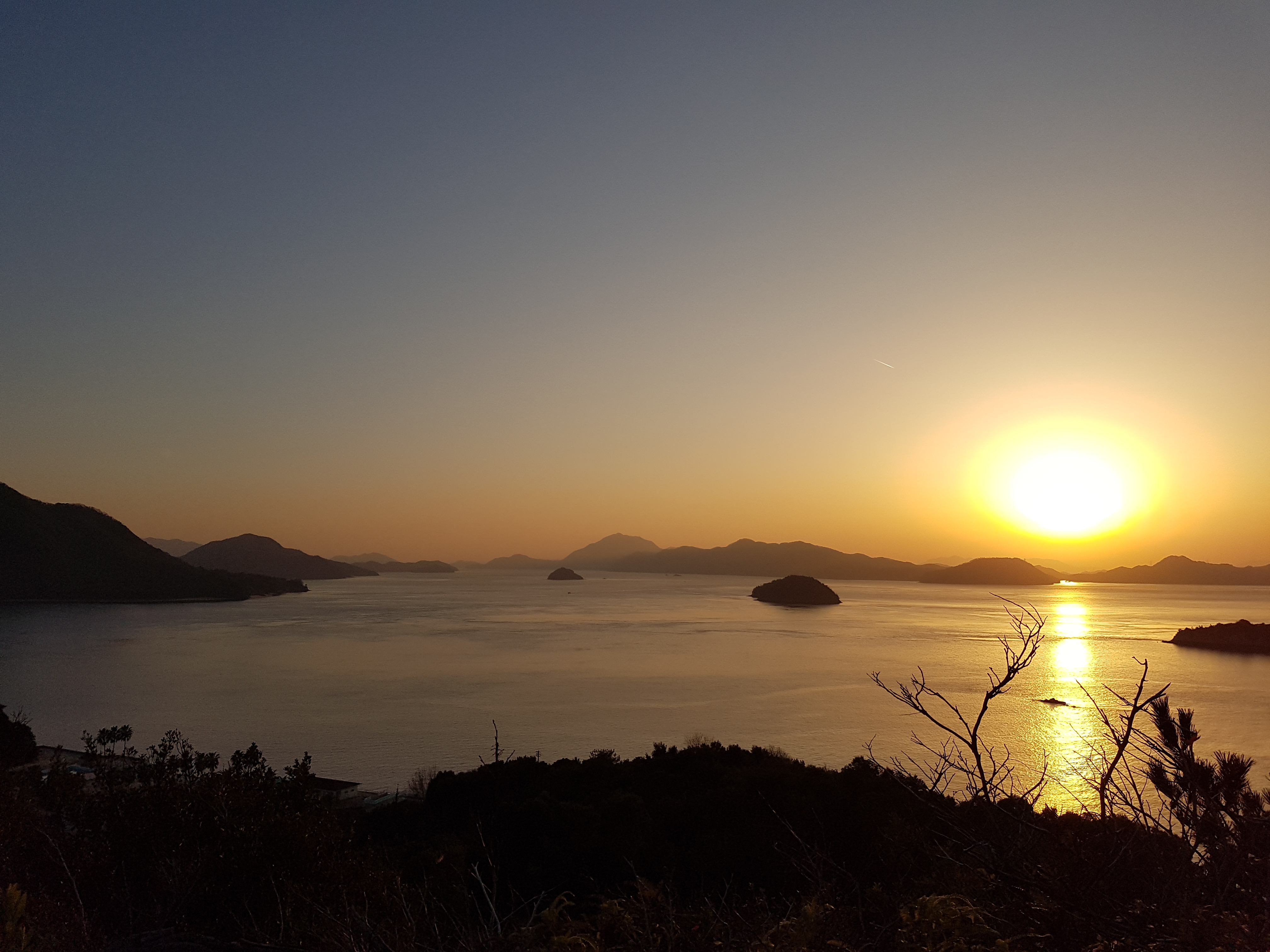 호텔 뒤편으로 작은 산이 있는데요. 해 질 무렵 그곳에 오르면 세토내해를 배경으로 펼쳐지는 멋진 노을을 감상할 수 있습니다. 너무 아름답습니다. 꼭 보시는 걸 추천드려요.