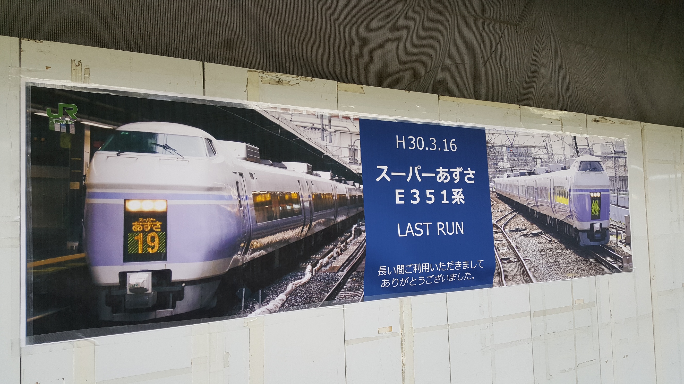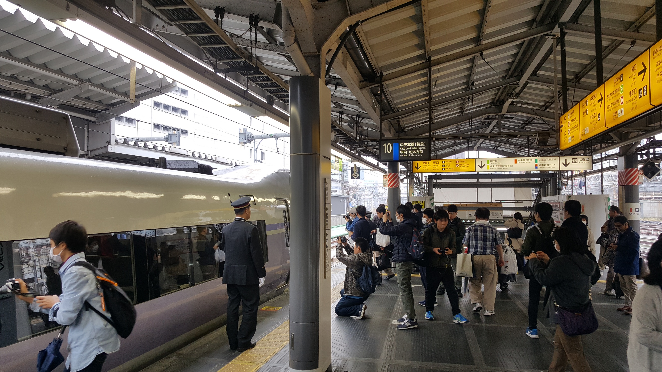 신주쿠역에서 기차를 기다리는데 플랫폼에 카메라를 들고있는 사람이 유난히 많아 무슨 일인가 했더니, 그 날이 제가 타고 가는 이 기차 (수퍼 아즈사 E351계)의 마지막 운행 날이라고 합니다. 그 후로도 정차하는 역마다 기차를 기다리고 있던 많은 사람들의 카메라에 제가 찍혔네요.