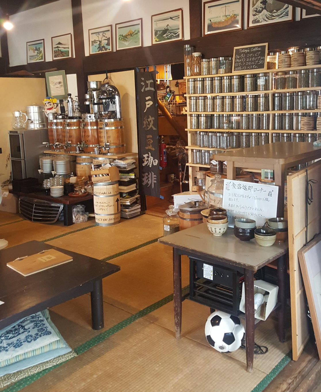 무척이나 낡은 건물에 내부도 빈티지풍으로 꾸며져 있는데요. 일본 전통의 말차를 팔아야 할 것 같은 이곳에 커피 향이 은은하게 퍼지는 게 전혀 낯설지 않고 의외로 잘 어울리는 곳입니다. 사실은 이 커피숍 근처에 사스케 식당이라는 엄청나게 유명한 식당이 있습니다. 밥을 먹으러 갔다가 너무나 긴 줄에 포기하고 주변을 배회하다가 우연히 발견하게 된 곳이었습니다만, 너무 좋은 커피 타임이었습니다.