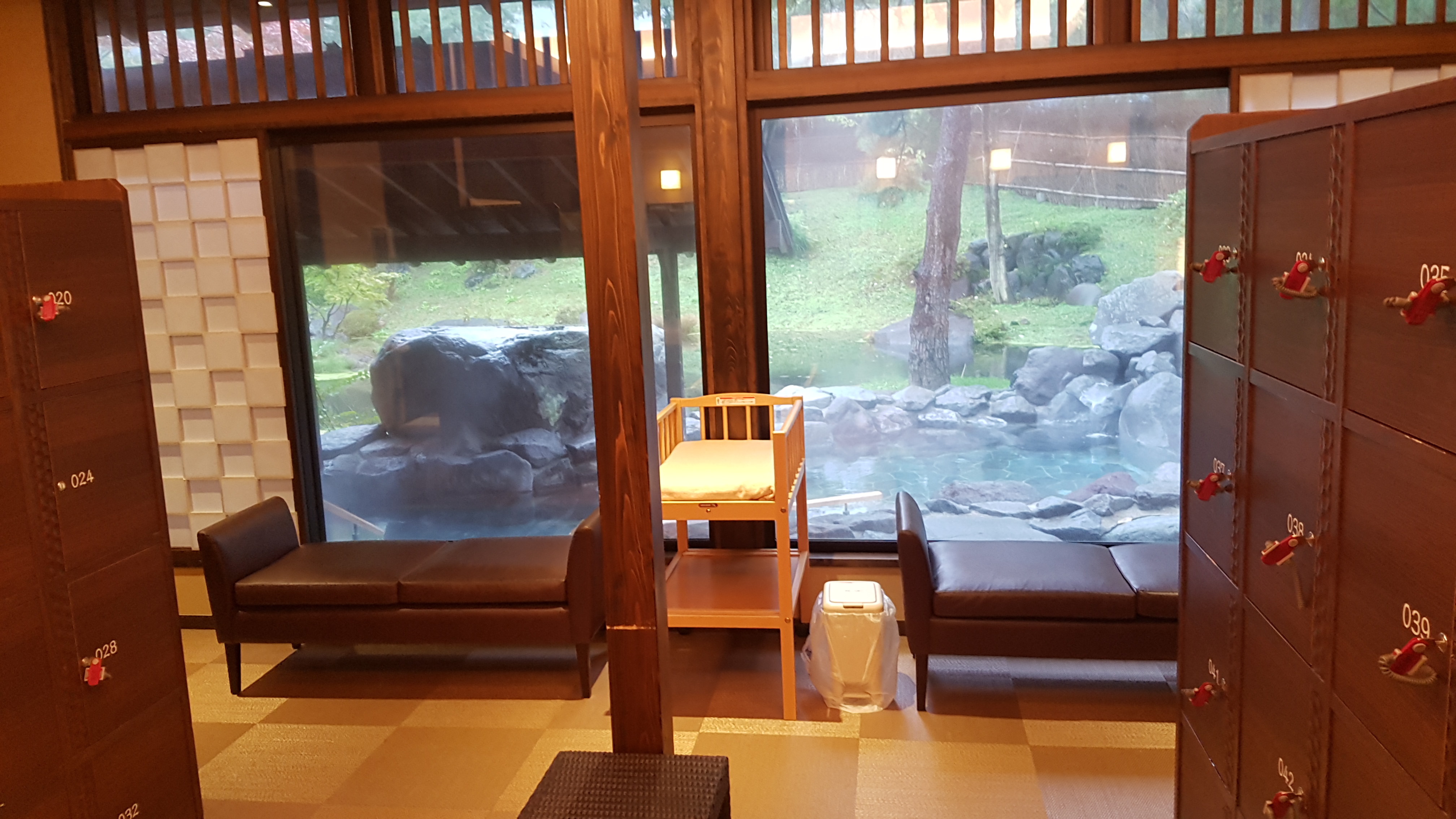 마츠노이는 온천에 힘을 많이 준 호텔이라고 할 수 있습니다. 총 3곳의 온천탕이 있어서 온센메구리(温泉巡り, 여기저기 온천을 순회한다는 뜻)를 하는 것 같은 기분을 느낄 수 있습니다. 또 온천중에 호타루 아카리노유(蛍あかりの湯, 반딧불 불빛의 탕)라는 곳은 밤이 되면 은은한 조명을 이용해서 진짜 반딧불을 보는 듯한 모습이 연출됩니다. 정말 좋아요.