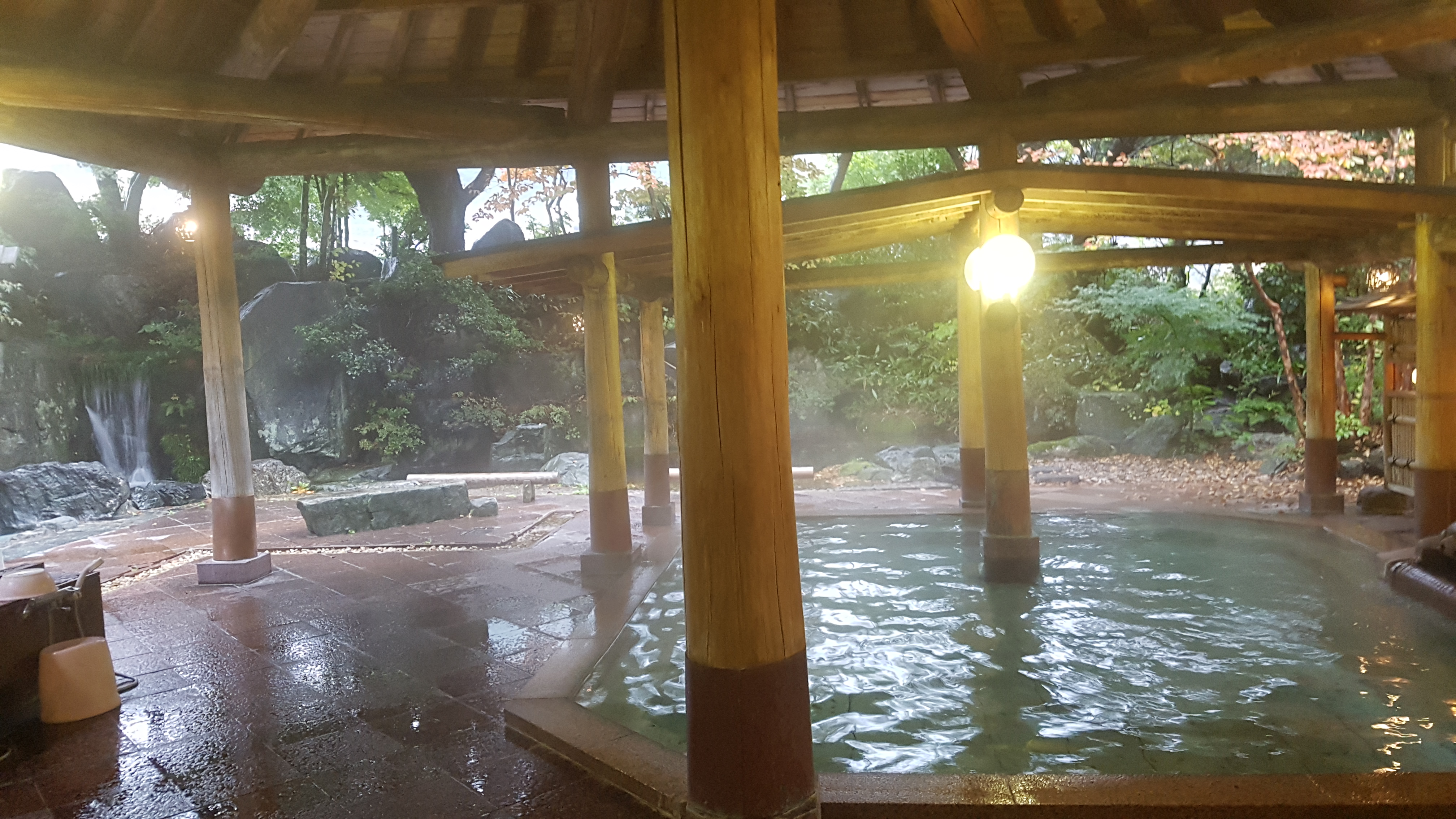어렵사리 사진을 찍을 수 있었네요. 대형 호텔은 사람이 많아서 거의 불가능한 일인데 운이 좋았습니다. 윗쪽이 호타루 아카리노유(蛍あかりの湯) 모습이고요. 아래 3장은 히아카리노유(火あかりの湯)라는 노천탕의 모습입니다.